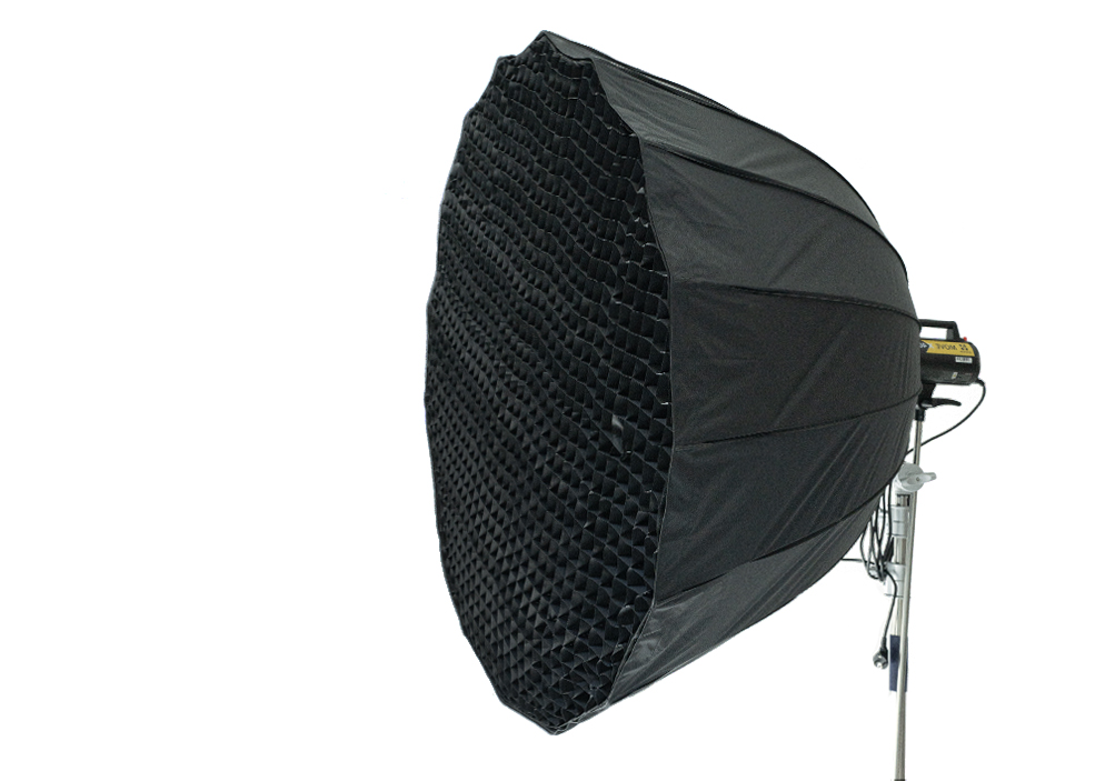 Softbox o średnicy 150cm rozprasza światło w sposób równomierny i naturalny, eliminując niepożądane cienie i zwiększając głębię i teksturę fotografii. Dodatkowo, wyposażona w grid, umożliwia jeszcze większą kontrolę nad kierunkiem i intensywnością światła, co pozwala na precyzyjne modelowanie sceny.